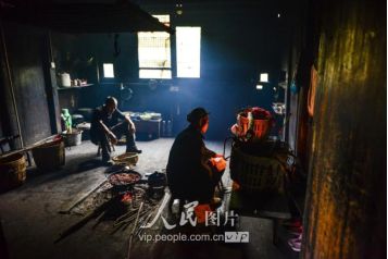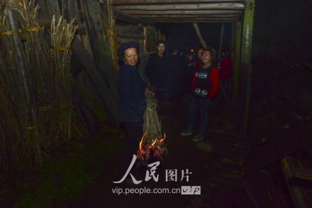 一般要到快過春節(jié)的時候,男方家才專門請人去接女方來洗糯米、打糍粑,新娘方能在夫家住上一夜;在來年農忙時節(jié),又接女方來幫忙,夜里仍不能在男方家留宿,幫完忙當晚即回去,只有待到女方有身孕后,新娘才到夫家長住。圖為11月16日夜,新娘潘芝銀家為準備婚禮,燈火徹夜長明。