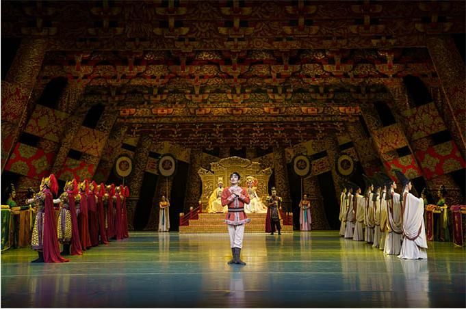 “大家可以看到,在這部舞劇中既有非常濃郁的盛唐風(fēng)格,也有非常鮮明的西域文化特點(diǎn)?!蔽鑴 秱鹘z公主》總導(dǎo)演左青表示。舞臺(tái)上的每一幕都有情景定位、情節(jié)助推、情感渲染、情調(diào)濡潤(rùn),兼具依托文本結(jié)構(gòu)的真情訴說(shuō)和舞蹈本體的詩(shī)意表達(dá),構(gòu)建起舞劇的整體形式感。