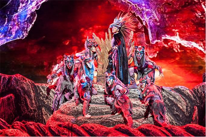 主創(chuàng)團(tuán)隊(duì)選取“賀蘭山巖畫”“巖羊”等寧夏獨(dú)有的文化元素符號(hào),以賀蘭山巖畫標(biāo)志性的“太陽神”作為人物原型,以三個(gè)部落之間的結(jié)盟和沖突作為戲劇主線,準(zhǔn)確地將巖畫藝術(shù)與雜技藝術(shù)巧妙融合,使其成為既有濃郁地域文化特色,又有巨大時(shí)空張力,更有人類共同情懷的雜技劇。