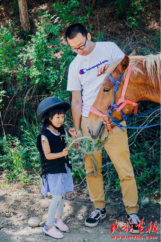 小小“牧馬人”喂馬。