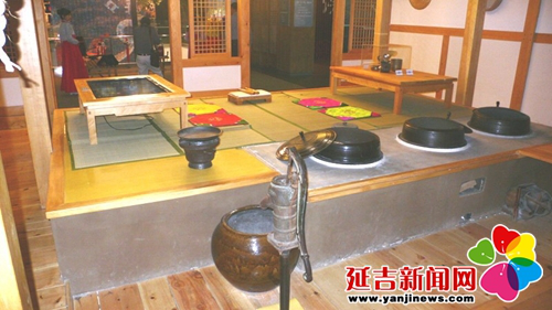 無(wú)論什么類型的朝鮮族傳統(tǒng)民居,只要走進(jìn)房屋,第一個(gè)感覺(jué)就是有很大的一個(gè)炕。炕是朝鮮族人在室內(nèi)的主要活動(dòng)空間,你看有的炕上親友們?cè)趪缹?duì)飲,有的炕上婦女們?cè)谧龌钣?jì),還有的炕上孩子們?cè)谕嫠???淮?,散熱面積就大,屋里到了冬天就會(huì)顯得特別暖和。在延邊地區(qū)朝鮮族房屋內(nèi)的灶坑更是別具一格,它下陷在地下,底部低于地面,上部還有蓋板,而蓋板和鍋臺(tái)、炕面形成了一個(gè)平面。據(jù)說(shuō),這種灶坑是既好燒、又衛(wèi)生。