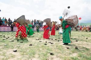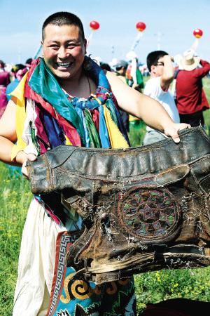 當(dāng)然,后來那達(dá)慕增加了許多新項(xiàng)目,比如賽駱駝、提水、縫蒙古袍扣子、撿牛糞、打斷牛骨比賽、蒙古象棋比賽、沙嘎(羊拐)比賽等。在北京舉辦的那達(dá)慕里,還融入了現(xiàn)代三大球類比賽項(xiàng)目,為了集體參與,增加了拔河比賽、扔沙包、服飾比賽、兒童說蒙古語(yǔ)比賽、兒童唱歌比賽等。