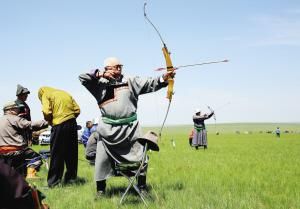 射箭是借助弓的彈力將箭射出,分為射遠(yuǎn)、射準(zhǔn)。最早用來狩獵,之后用于戰(zhàn)爭(zhēng),最后才成為體育運(yùn)動(dòng)。在蒙古高原的很多巖畫里,都有射箭的圖案。與馬的馴服使用一樣,弓箭的使用增加了人類征服自然的威力和自信。