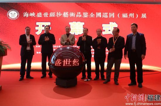 25日上午,以“紹承傳統(tǒng)、弘裕國學(xué)”為主旨的海峽盛世經(jīng)抄藝術(shù)品鑒全國巡回(福州)展在福州揭幕。