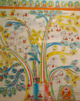 “唐卡”也叫“唐嘎”、“曼湯”,系藏語譯音。唐卡的起源,至今沒有史料給予精確的記載。據(jù)藏史記,兩千多年前在西藏修建的第一座宮殿——雍布拉宮的墻壁上就繪有壁畫,由此說明唐卡的雛形是源于壁畫。有的學(xué)者認(rèn)為,最早的唐卡是繪制在獸皮上,它起源于牧業(yè)文明的雅礱文化時期。唐卡可分為兩大類,一類是用絲絹制成的唐卡叫“國唐”,另一類是用顏料繪制的唐卡叫“止唐”。常說的80幅醫(yī)學(xué)唐卡即“止唐”中的一種,全稱為彩色繪畫唐卡。彩繪唐卡是依據(jù)《四部醫(yī)典》這部巨著,在公元1730年五世達(dá)賴授意第司·桑結(jié)嘉措組織藏區(qū)著名醫(yī)學(xué)家、繪畫大師通過對尸體解剖、藥材實(shí)物考察,以科學(xué)態(tài)度整理繪制的,又被稱為《四部醫(yī)典系列掛圖》,掛圖的繪制使《四部醫(yī)典》這部博大精深的醫(yī)著史書簡明易懂。西藏自治區(qū)藏藥廠的陳列室藏這珍貴的歷史資料——醫(yī)學(xué)唐卡,幾百年過去了,唐卡色彩依然明亮艷麗、工筆細(xì)膩、活靈活現(xiàn),栩栩如生。繪制唐卡的原料全部是用金、銀、珍珠、瑪瑙、珊瑚、松石、孔雀石、朱砂等珍貴的礦物寶石和藏紅花、大黃等天然植物做顏料制作而成,使唐卡有著非常高的純度和穩(wěn)定性。第司·桑結(jié)嘉措完成的唐卡有79幅,加附由第司·桑結(jié)嘉措親筆題詩加蓋印章的一幅歷代名醫(yī)圖,組成“80幅唐卡”。80幅唐卡,從藥王及藥王城(藏醫(yī)學(xué)基礎(chǔ)理論的建立),人體生理病理、診斷、治療的樹喻學(xué)說,病因、癥狀和分類,藏藥的藥物理論和分類,防病、診斷和治療、養(yǎng)生方法, 生動形象地反映了藏醫(yī)藥學(xué)發(fā)展的進(jìn)程和偉大實(shí)踐。藏醫(yī)彩繪唐卡除了有極高的教學(xué)價值外,還有很高的民族學(xué)、歷史學(xué)、佛學(xué)及繪畫學(xué)價值,是研究藏文化的珍貴資料,其卷幅之多、內(nèi)容之廣博、構(gòu)思之巧妙、畫工之精湛堪稱世界醫(yī)學(xué)掛圖之最,是藏醫(yī)學(xué)對世界醫(yī)學(xué)的珍貴貢獻(xiàn)。詳細(xì)名目如下: