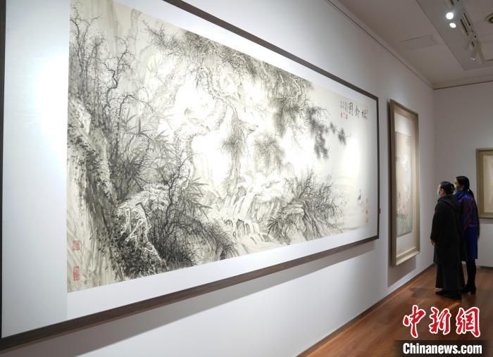 在展覽上,為慶祝中國藝術(shù)研究院建院70周年,田黎明和許俊,牛克誠、周石峰、任清和曾三凱,劉萬鳴和劉彥水,趙建成、崔進和劉少寧分別合作的《新綠》《千巖霞映》《棲禽圖》《我見青山多嫵媚》4幅丈二尺幅的中國畫同時亮相。