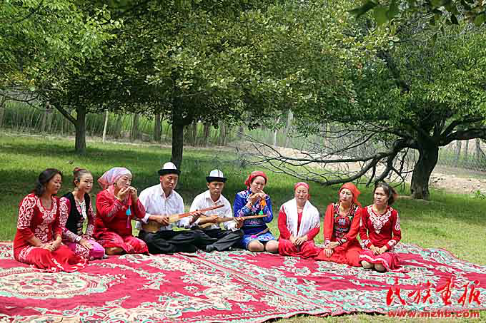 據(jù)色帕巴依鄉(xiāng)黨委委員阿依木古麗·艾山卡德介紹,該鄉(xiāng)在鄉(xiāng)中心小學(xué)專門開設(shè)課程教學(xué)生學(xué)彈庫姆孜琴,并積極舉辦“我為庫姆孜代言”活動,積極培養(yǎng)庫姆孜傳承人。此外,鄉(xiāng)里還專門組建有庫姆孜彈唱隊?!拔覀兝冒偃瘴幕瘡V場和日常的演出走村串巷,積極參加縣宣傳部開展的各項文體活動。今年2月開展的群眾大會,把庫姆孜音樂重新填詞,配合惠民政策宣傳,將傳播民族文化與群眾思想政治工作相結(jié)合。”同樣,在烏恰縣吾合沙魯鄉(xiāng)恰提村,當(dāng)?shù)伛v村工作隊積極組織20名返鄉(xiāng)學(xué)生開辦“庫姆孜彈唱文藝培訓(xùn)班”,廣泛調(diào)動返鄉(xiāng)大學(xué)生加入到文化傳承的行列中。