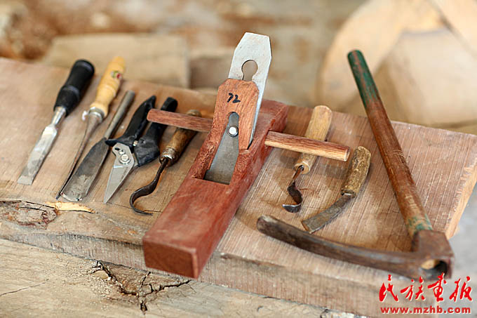 這間工作室的主人叫阿吉別克·買買達(dá)洪,主人恰巧有事外出,他的弟弟,年輕朝氣的吾蘭別克張羅著給記者們當(dāng)起了翻譯。正忙活著打磨樂器的小伙叫木沙,今年31歲,問起庫姆孜的制作工藝,他才把頭抬起來,笑著說:“我做這個十年了。一把庫姆孜,往往琴身是杏木,蓋子是松木。杏樹、松樹木切割后放在干燥的地方,一兩年后才能用。”庫姆孜有三根弦,琴弦以前用動物的腸子手工自制,現(xiàn)在有的工匠開始使用現(xiàn)成的弦。判斷庫姆孜手工藝人手藝高低的關(guān)鍵何在?木沙解釋說,“要看彈出來的聲音。木頭的原料不同,出來的聲音也不同?!边@個回答似乎也隱藏了手工藝人的絕活所在,可意會不可言傳的技藝,往往在一代代的工匠手中以師徒親授的方式傳承。