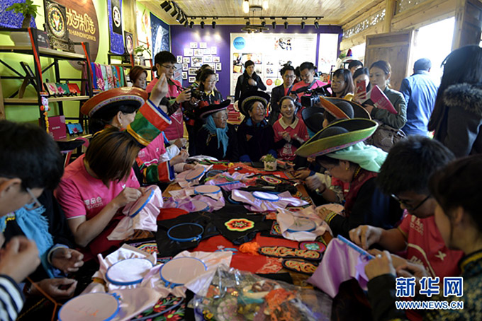 土族人的盤繡歷史悠久,工藝獨具匠心,有較高的文化價值,2006年被列入第一批國家級非物質(zhì)文化遺產(chǎn)名錄。盤繡源于青海省互助土族自治縣,十八大以來,互助縣土族自治縣將勞動力培訓(xùn)轉(zhuǎn)移和市場需求結(jié)合起來,發(fā)展具有地方民族特色的土族盤繡培訓(xùn)項目,把發(fā)展土族盤繡作為擴(kuò)大農(nóng)村婦女增收就業(yè)的渠道之一。目前,全縣有2萬余名婦女從事土族盤繡工藝品的制作,使盤繡這一古老的手工藝得到傳承和發(fā)展,通過一針一線間實現(xiàn)了土族文化與世界文化的交流。