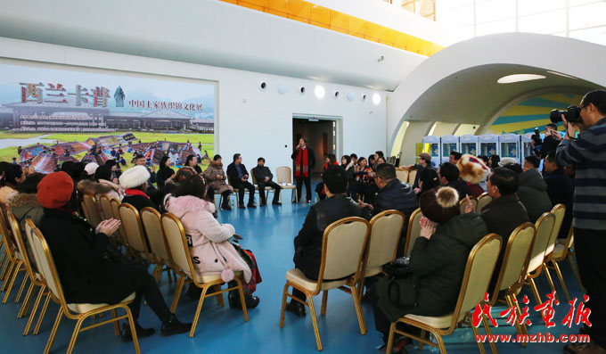 2018年1月11日,中國婦女兒童博物館展出的“西蘭卡普——中國土家族織錦文化展”迎來了42位特別的觀眾,他們是魯迅文學(xué)院第30期少數(shù)民族文學(xué)創(chuàng)作培訓(xùn)班的學(xué)員,來自全國18個省市、16個民族的少數(shù)民族作家,他們代表著中國民族文學(xué)創(chuàng)作的新生代。參展前舉行了座談會,中國民族博物館黨委副書記、副館長張志文,中國婦女兒童博物館副館長劉華彬,魯迅文學(xué)院副院長邢春等領(lǐng)導(dǎo)以及第30期少數(shù)民族文學(xué)創(chuàng)作培訓(xùn)班的學(xué)員們參加了座談會。