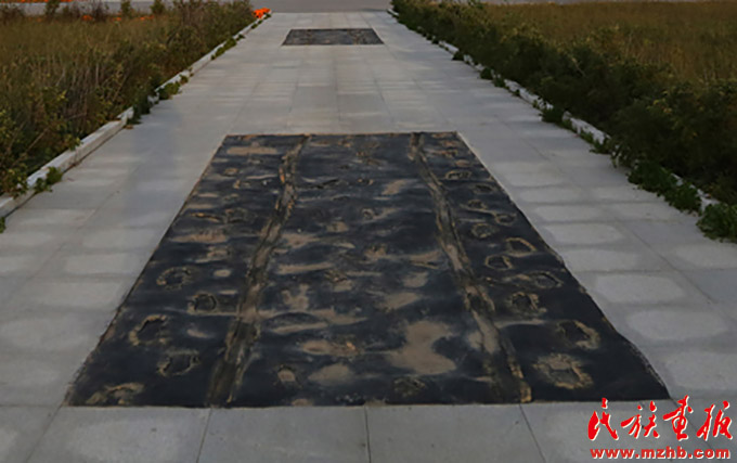 廣場(chǎng)上的足跡反映的是達(dá)斡爾人南遷時(shí)留下的腳印、馬蹄印、車轍印