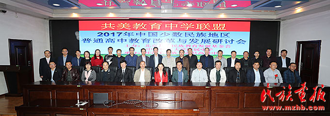 圖為參加“2017中國少數(shù)民族地區(qū)普通高中教育改革和發(fā)展研討會”的參會代表合影留念