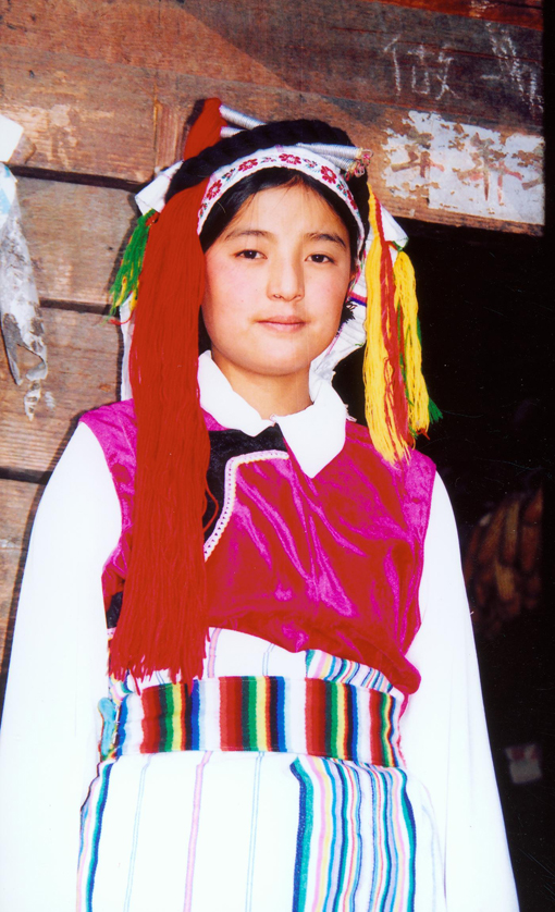 蘭坪型服飾則受當?shù)匕鬃搴蜐h商的影響較深?!暗刂髅薄笔降膱A頂小帽、對襟長衫和馬褂等裝束,向我們展示了處在礦產(chǎn)資源開發(fā)區(qū)域的民族群屬,其傳統(tǒng)著裝也因頻繁接觸外界文化而受到影響,并有所改變。