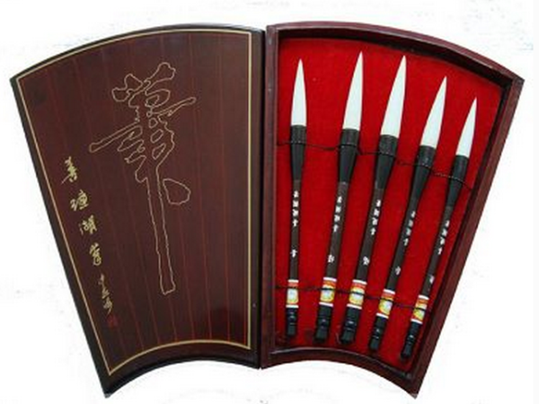 湖筆的第三個特點是品種多。目前以用途可分書寫繪畫、工業(yè)、特用三大類用筆;以性能分有軟、硬、兼三類。這三類所用的筆料就有十多種獸毛及其它禽羽等為原料,像硬毫中的黃鼠狼(鼬尾)、石獾、馬尾、豬鬃、山兔以富強性,落墨勁有力流利見長,軟毫的羊毫長而穎銳,運軟圓渾圓含墨飽滿,枯潤適用得當則墨色筆意變化無窮。兼毫則剛?cè)嵯酀藭水?。如似大小長短粗細來分那就有數(shù)百種之多,這和中國許多毛筆產(chǎn)地品種都類似的。