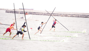 獨(dú)竹漂比賽是直道競速項(xiàng)目,運(yùn)動員站在竹漂上,利用手中的竹竿劃水前進(jìn),以抵達(dá)終點(diǎn)的先后次序決定名次。本屆獨(dú)竹漂比賽分為男子直道競速和女子直道競速兩大項(xiàng),設(shè)有60米、100米、200米距離的小項(xiàng),有13支隊(duì)伍參加。其中,河南隊(duì)為首次參加。