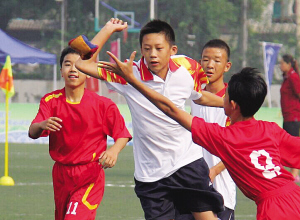 19日舉行的開幕式文藝表演《鼓舞你我他》,特別突出了體育元素和民族元素的結(jié)合,1000余名來自北京市各行各業(yè)的非專業(yè)演員參與演出。(上圖為運(yùn)動(dòng)會(huì)開幕式現(xiàn)場(chǎng);下圖為運(yùn)動(dòng)會(huì)綾球比賽現(xiàn)場(chǎng)。)