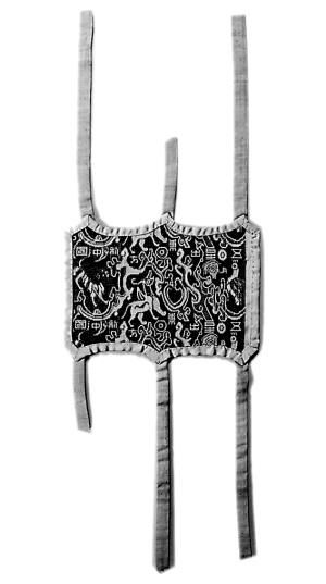 “五星出東方利中國”錦護臂,東漢時期,民豐縣尼雅墓地出土。
