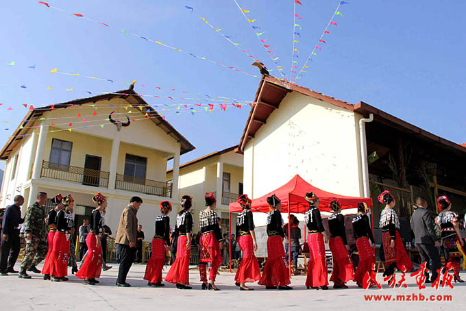 在簡單的入住儀式上,到場的梁河縣領(lǐng)導(dǎo)為拱母新村村民發(fā)放了象征著開啟新生活的“鑰匙”。梁河縣信用聯(lián)社還向拱母新村捐贈5000元。村民與周邊的各族群眾載歌載舞,表達(dá)著搬入新居的歡樂。