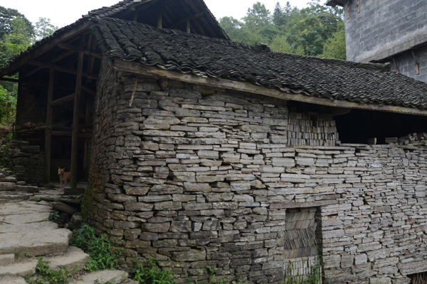 石板房以石條或石塊砌墻,墻可壘至5至6米高;以石板蓋頂,風(fēng)雨不透??傊龣_條、椽子是木料外,其余全是石料,甚至家用的桌、凳、灶、缽都是石頭鑿的。一切都樸實(shí)無(wú)華,固若金湯。這種房屋冬暖夏涼,防潮放火,相對(duì)采光較差。