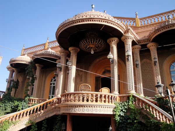維吾爾族的建筑物有其獨(dú)特風(fēng)格。房屋方形,有較深的前廊;室內(nèi)鑿壁龕,并飾以各種花紋圖案。舊式房屋多系土木結(jié)構(gòu),窗子較小,房頂開一個(gè)窗,通風(fēng)采光差;室內(nèi)進(jìn)門有一連灶土炕,用來做飯取暖。平房一般比較講究寬敞明亮通風(fēng)。廳室布置整潔樸雅,四壁呈白色泛藍(lán),掛的壁毯,靠墻置床,被褥均展鋪于床罩或毛毯之下,床上只擺設(shè)一對(duì)鏤花方枕。室中央置長(zhǎng)桌或圓桌,家具及陳設(shè)品多遮蓋有鉤花圖案的裝飾巾,門窗掛絲絨或綢類的落地式垂簾,并襯飾網(wǎng)眼針織品。地面多裝飾民族圖案。維吾爾族人喜歡在庭院中種植花卉、果樹和葡萄,整個(gè)環(huán)境顯得雅靜、清新。