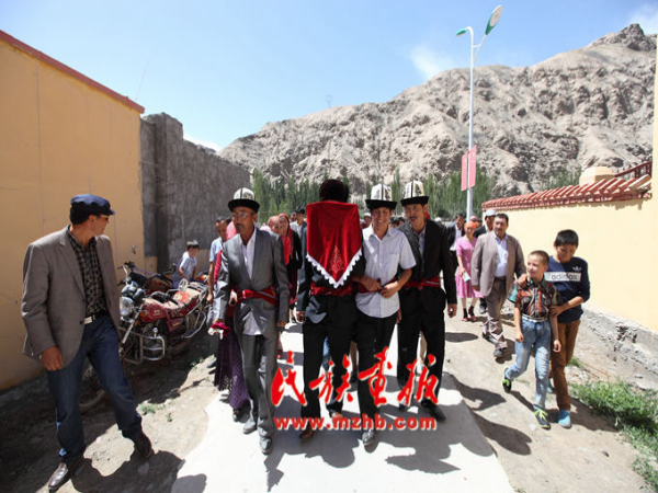 新郎買(mǎi)買(mǎi)提義薩克·阿布都薩拉木與新娘齊曼古麗·買(mǎi)買(mǎi)提艾孜木