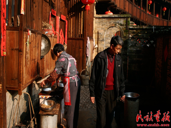 問起族長和樓長的區(qū)別時(shí),江友于說,因?yàn)槌袉恰⑽逶茦呛褪罎蓸嵌际且粋€(gè)大家族,因此三座土樓只有一個(gè)族長;現(xiàn)在,每座土樓都有樓長。原來族長德高望重,管的事務(wù)包括方方面面;現(xiàn)在雖然也有人來找江友于幫忙協(xié)調(diào)矛盾,但樓長職責(zé)主要限于維護(hù)樓內(nèi)衛(wèi)生,另外協(xié)助鄉(xiāng)政府處理其他事務(wù)。