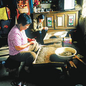 街津口村的赫哲族人在準(zhǔn)備捕魚(yú)的網(wǎng)