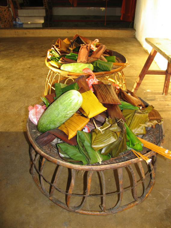 所有佐餐菜肴及小吃均以酸味為主,如酸筍、酸豌豆粉、酸肉及野生的酸果;喜歡吃干酸菜,其制法是把青菜曬干,再用水煮,加入木瓜汁,使味變酸,然后曬干儲藏。吃時放少許煮菜或放在湯內(nèi)。這種酸菜,有些地方的傣族幾乎每天都吃。據(jù)說傣族之所以常食酸味菜肴,是因常吃不易消化的糯米食品,而酸味食品有助于消化??喙鲜钱a(chǎn)量最高、食用最多的日常蔬菜。除苦瓜外,西雙版納還有一種苦筍,因此傣族風(fēng)味中還有一種苦的風(fēng)味,較有代表性的苦味菜肴是用牛膽汁等配料烹制的牛撒皮涼菜拼盤。