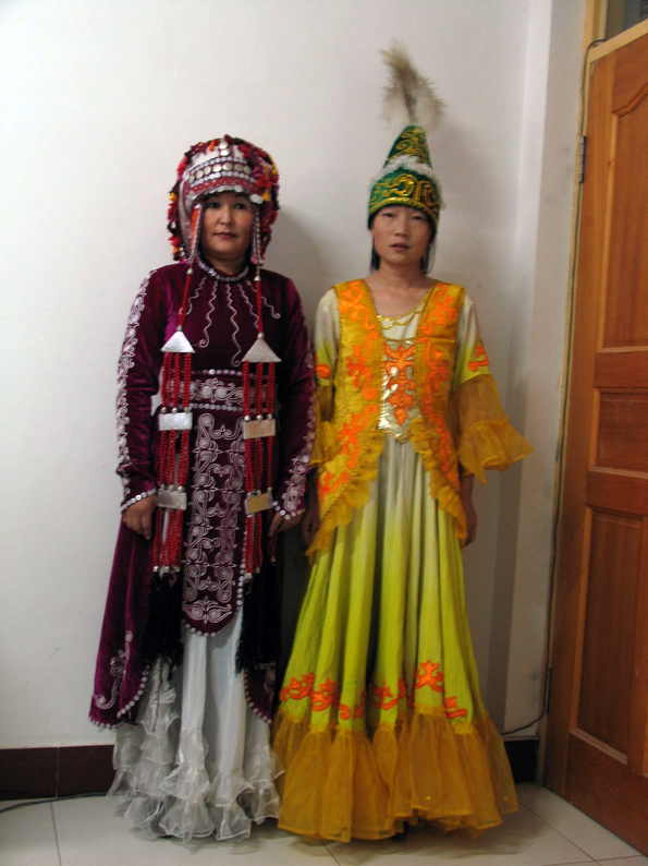 柯?tīng)柨俗巫迮右暷挲g的不同,所穿衣服的顏色也有所差異,年輕女子的顏色以白色、紅色燈色彩亮麗的顏色為主,而中年婦女和老人的衣服則多為黑色、深藍(lán)色等深色衣物???tīng)柨俗巫迥贻p女子大都喜歡穿連衣裙,裙子長(zhǎng)度到達(dá)腳面,在裙子的領(lǐng)口、袖口、前襟、腰間多繡有花草紋理的精致圖案,連衣裙下部多為千褶裙,裙面上繡著精美的傳統(tǒng)花紋,裙子底端則會(huì)連接縫上白色的裙邊,腳穿繡花皮長(zhǎng)靴,頭戴用貓頭鷹細(xì)毛點(diǎn)綴縫制帽檐和帽花的“艾力其克”氈帽,再配上能歌善舞的柯?tīng)柨俗巫迮屿`動(dòng)曼妙的舞姿,宛若仙女下凡,令人贊嘆不已。