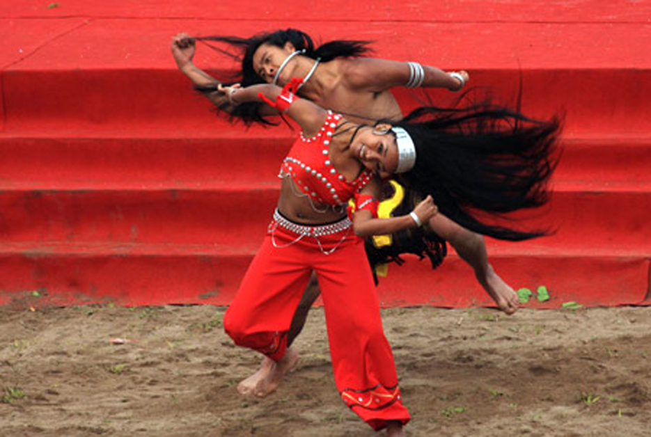 西南邊陲云南省臨滄市佤族藝術(shù)家表演的佤族舞蹈 引自中國經(jīng)濟(jì)文化網(wǎng)