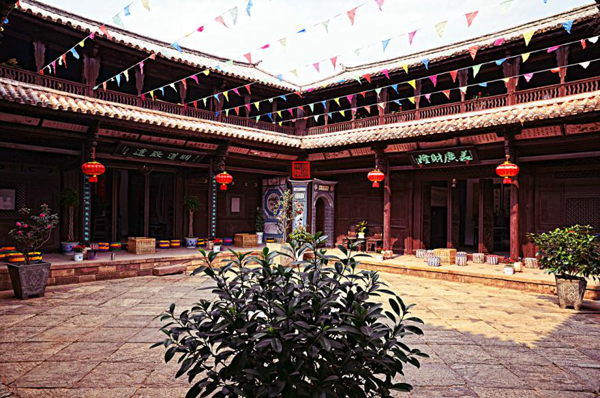 雖然經(jīng)過歲月侵蝕,但院落的每一個角落,無論是精心裝飾的門楣還是匠心獨具的花窗,盡管經(jīng)過了多少年的風(fēng)雨,依然令人感到當(dāng)年的氣魄和獨有的魅力。在馬如驥大院的二樓,那藻井的彩繪今天依然清晰美麗,有彩繪《三文筆》、《阿文學(xué)?!贰ⅰ峨u足山莊嚴(yán)塔》、《上海街景》。特別是彩繪《上海街景》,被專家視為不可多得的珍貴資料,它不僅惟妙惟肖的再現(xiàn)了當(dāng)年十里洋場上海灘的風(fēng)華,還體現(xiàn)了馬幫商人的開放胸襟和開闊眼界,體現(xiàn)了對現(xiàn)代化生活的向往和對未來的憧憬。