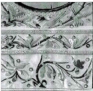 侗族刺繡工藝流行于湘、桂、黔三省交界處的侗族聚居區(qū)。圖案紋樣多取材于自然景物,如花、鳥、魚、蟲之類。畫面生動活潑,色彩明麗。