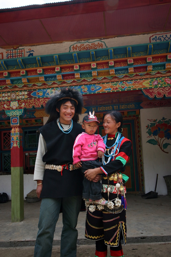 隨著氏族制的解體,女子的社會(huì)地位逐漸下降,男子看重女子的貞操,因此公房因不合時(shí)宜而慢慢消失,由長(zhǎng)房取代?!伴L(zhǎng)房”崩尼語(yǔ)為“南塔”,與邦戈的區(qū)別在于其內(nèi)部有隔墻,在每個(gè)居室里設(shè)有火塘,有的一個(gè)家族住在一座長(zhǎng)房?jī)?nèi),形成一個(gè)大家庭。珞巴族大家庭形成的原因一般是一夫多妻或奴隸較多,妻子最多的有十多個(gè),多妻的主要原因是富有的男子可以隨意買(mǎi)賣(mài)女子或者是轉(zhuǎn)房。這種家庭的居住形式主要有各妻子不分居和不分居兩種,在丈夫的主持下共同生產(chǎn)生活。就珞巴族家庭形態(tài)的總體來(lái)看,仍以一夫一妻制的小家庭為主,因此存在長(zhǎng)屋的同時(shí),每個(gè)部落都建有供一夫一妻的個(gè)體家庭居住的獨(dú)立小房,或?yàn)楦蓹谑?,或?yàn)榈鼐邮健?/p>