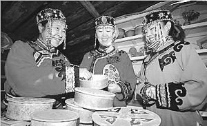 張玉霞(左一)教授樺樹皮制作技藝