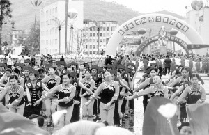 具有濃郁風(fēng)情的重慶酉陽(yáng)土家擺手舞,近年來(lái)開(kāi)始走紅全國(guó)。2002年5月3日,在縣城桃花源廣場(chǎng),舉行了“酉陽(yáng)第二屆土家擺手舞大賽”暨迎接國(guó)家文化部“酉陽(yáng),土家擺手舞之鄉(xiāng)”命名驗(yàn)收。作為“中國(guó)記者酉陽(yáng)行”大型采風(fēng)活動(dòng)成員之一,筆者有幸觀看了土家族上萬(wàn)男女老少冒雨艷裝重彩、翩躚起舞、歡騰喜慶的場(chǎng)面。