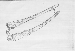 10月,我們坐火車,經(jīng)齊齊哈爾、牙克石,來到呼倫貝爾的鄂倫春自治旗阿里河鎮(zhèn),參加了旗里舉辦的慶祝國慶12周年和建旗10周年的慶典活動。慶典上有一個鄂倫春文化展,展出了鄂倫春人的生產(chǎn)生活用具、手工藝品等。展覽結(jié)束后,旗政府就將展品全部交給我們,贈送給中國歷史博物館。剛一出馬就收獲了這么多文物,這讓我非常興奮。