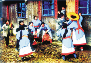 花瑤山寨獨(dú)具個(gè)性的婚俗活動(dòng),除了對(duì)新人的美好祝福,也是妹子們亮衣裳、亮嗓音、亮智慧和尋覓心上人的大好時(shí)機(jī)?!白顗牡娜司褪敲饺斯?,我們姐妹們朝夕相處,從不分離,卻被他們一個(gè)個(gè)給騙走了!”山寨里的妹子都這樣懷恨媒人公(可誰(shuí)也離不開他們喲)。在妹子們的眼中,前來(lái)送禮、接親的漢子,都是些不懷好意的媒人公,非教訓(xùn)一回不可——婚俗中的狂歡“打泥巴”便開始了。