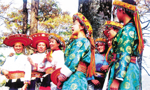 這是一個(gè)特別愛美的民族。男人們著裝瀟灑隨意,頭纏黑白相間的方格頭帕,倍顯英俊。女人們則身穿黛藍(lán)色對(duì)襟長(zhǎng)衫,鑲著的紅布邊和紅布扣純?yōu)檠b飾。下著素艷相融的花裹裙,腰纏五顏六色的腰帶,頭上再配一個(gè)后面吊有長(zhǎng)長(zhǎng)彩須、狀似倒扣斗篷的火紅頭巾,把個(gè)茫茫綠野點(diǎn)綴得山花爛漫、如畫如詩(shī)。