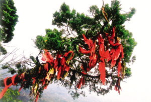花瑤同胞祖祖輩輩與寨子里的古樹久久相依。在他們心中,有著頑強(qiáng)生命力的老樹飽吸天地之靈氣,百年不腐,千年不朽,早已是神,時(shí)時(shí)都在庇佑他們。故對(duì)之倍加敬仰,又十分親近,誰(shuí)都不會(huì)貿(mào)然去傷害它們。即便是蟲蛀樹空枯朽倒地,也不敢拖回家用,而是讓其自生自滅,還原于土。