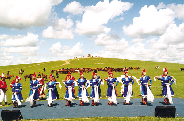 內(nèi)蒙古烏蘭牧騎的演員,吹拉彈唱跳,幾乎個(gè)個(gè)是多面手。從以前騎馬下鄉(xiāng)到現(xiàn)在坐車下鄉(xiāng),方式雖然有變,但為農(nóng)牧民演出的熱情沒有變。鄂溫克自治旗烏蘭牧騎在當(dāng)?shù)貫檗r(nóng)牧民演出都是公益性的,一年最少也有100多場。但自然地,由上級(jí)指派、旅游接待、大型晚會(huì)、出訪演出,則收一些相應(yīng)費(fèi)用。全年下來300多場。他們的演出節(jié)目,一般都有舞蹈、獨(dú)唱、重唱、馬頭琴合奏、民歌聯(lián)唱等,包括《敖包相會(huì)》、《萬馬奔騰》等馬頭琴名曲,也有他們自己創(chuàng)作的《山林回想》、《鄂溫克大地》等獲獎(jiǎng)歌舞劇目。