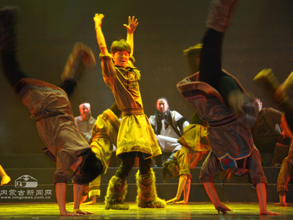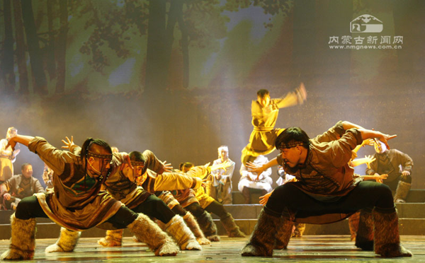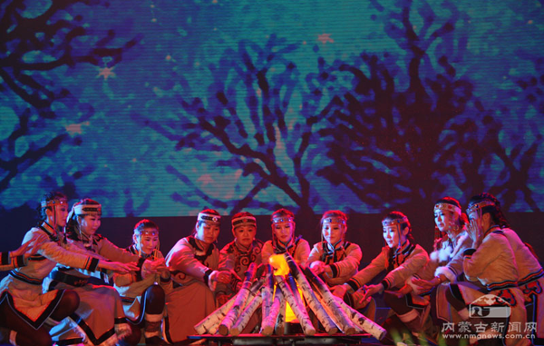 演員們的表演也頗為出色。參演的60多名演員全部來自鄂溫克自治旗烏蘭牧騎,這是一支以年輕人為主的隊(duì)伍,他們在舞臺(tái)上的精彩表現(xiàn)給這部歷史題材的歌舞劇增添了青春的活力。比如“搶樞”一場,不僅形象地再現(xiàn)了鄂溫克民間一項(xiàng)傳統(tǒng)娛樂活動(dòng)——“搶樞”,突顯了年輕人活潑好動(dòng)的特點(diǎn),而且傳達(dá)出鄂溫克年輕人在遷徙途中不畏艱險(xiǎn)、苦中作樂的頑強(qiáng)精神。尤其是在本場最后,小伙子們一段奔放狂野的群舞盡顯陽剛之美,展現(xiàn)了鄂溫克民族的豪爽與激情。