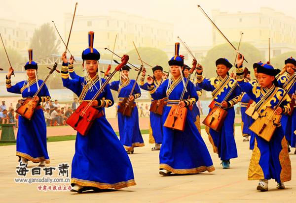 2016年8月底,肅北作為甘肅省唯一以蒙古族民族為主體的自治縣,特意承辦了八省(區(qū))第七屆“母語杯”蒙古文書法大賽作品展。在其頒獎晚會上,肅北縣烏蘭牧騎登臺亮相,博得一次次熱烈的掌聲。演出節(jié)目包括:歌曲《父親的故鄉(xiāng)》《陽光下的母親》《不會忘記》,舞蹈《筷子舞》《薩吾爾登》,馬頭琴齊奏《風(fēng)中的蘇力德》等。
