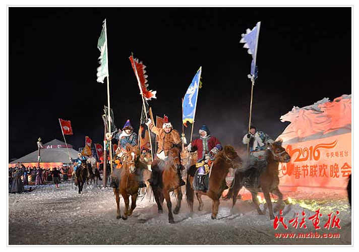 2016年中央電視臺(tái)春節(jié)聯(lián)歡晚會(huì)北方分會(huì)場(chǎng)的呼倫貝爾市陳巴爾虎旗 (呼倫貝爾市市委宣傳部供圖)