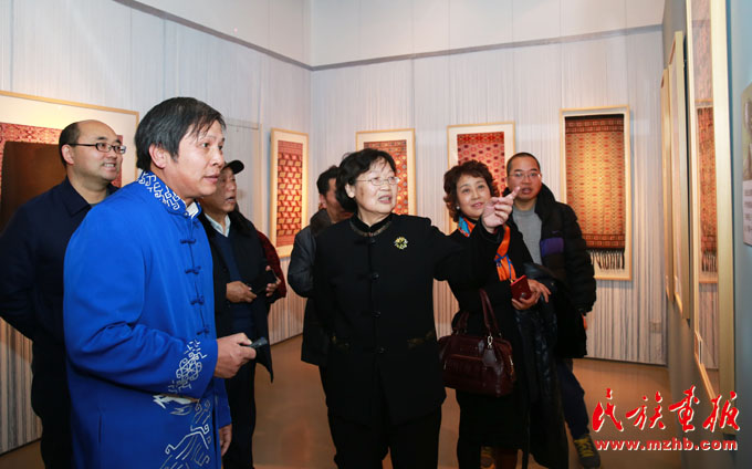 座談會(huì)上,中國民族博物館副館長(zhǎng)張志文介紹說:土家族是一個(gè)古老的民族,有著4000多年的文明發(fā)展史。土家族在全國有2個(gè)自治州、8個(gè)自治縣,人口達(dá)835萬。土家織錦從秦漢時(shí)期萌芽,歷經(jīng)賨布、溪布、斑布、土錦等幾個(gè)發(fā)展階段,在明、清時(shí)期開始定型,至今已有2000余年的燦爛歷史。中紀(jì)委駐財(cái)政部紀(jì)檢組原組長(zhǎng)、全國婦女手工編織協(xié)會(huì)副會(huì)長(zhǎng)賀邦靖說:土家織錦是土家婦女智慧的結(jié)晶,是武陵山區(qū)文化精準(zhǔn)扶貧的重點(diǎn)項(xiàng)目之一。從這個(gè)展覽上我們不僅可以看到土家織錦的燦爛與美麗,還可以看到國家實(shí)施文化精準(zhǔn)扶貧的實(shí)效。