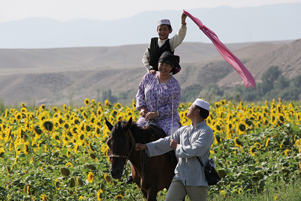 相比于《德吉德》中對(duì)蒙古人性情的原生態(tài)展現(xiàn),《伊犁河》似乎在民族特征上不那么突出。依賴故鄉(xiāng)的母親、向往城市的兒子、生活的變遷與成長(zhǎng)的感悟,在世俗每個(gè)角落里的家庭中都上演著、發(fā)酵著。這種普世的、共性的情感,無(wú)關(guān)民族,無(wú)關(guān)地域。導(dǎo)演用伊犁的村莊和上海這個(gè)現(xiàn)代化都市之間的落差,詮釋著親情與文化。影片的結(jié)局無(wú)疑做出了選擇,無(wú)論城市的人群多么川流不息,也比不上童年在故鄉(xiāng)與親人的耳鬢廝磨。