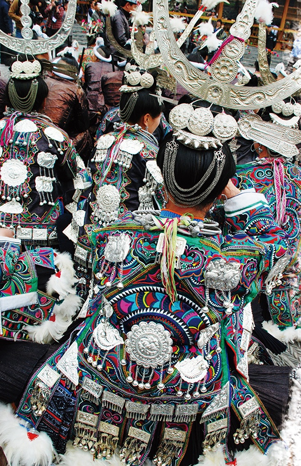 亳無(wú)疑問(wèn),蝴蝶圖騰即是對(duì)蠶的崇拜,蠶文化原初的核心便是人歸途的儀式,人要在這種和蠶一祥的儀式中得到再生。今天的苗族,仍然保持著以絲綢裹身而葬的喪葬習(xí)俗。我祖母養(yǎng)蠶織就的絲織品,我們習(xí)慣稱(chēng)作蠶絲床單,絕大部分是備著喪葬所用。凡有人去世,主客必送一床蠶絲單,沒(méi)有是不行的,被視為不懂禮節(jié),而死者獲得蠶絲單越多越好。有的人家收到的蠶絲單過(guò)多,就會(huì)保存一部分,留著將來(lái)的喪事送禮。苗族每個(gè)人都必備一件絲質(zhì)壽衣。并且,在許多重大的儀式活動(dòng)中必須要著絲綢服裝。比如在苗族重大的鼓藏節(jié)期間,鼓社頭必須穿絲織鼓社服;大祭典活動(dòng)時(shí),祭師也必須穿絲質(zhì)服裝等等。