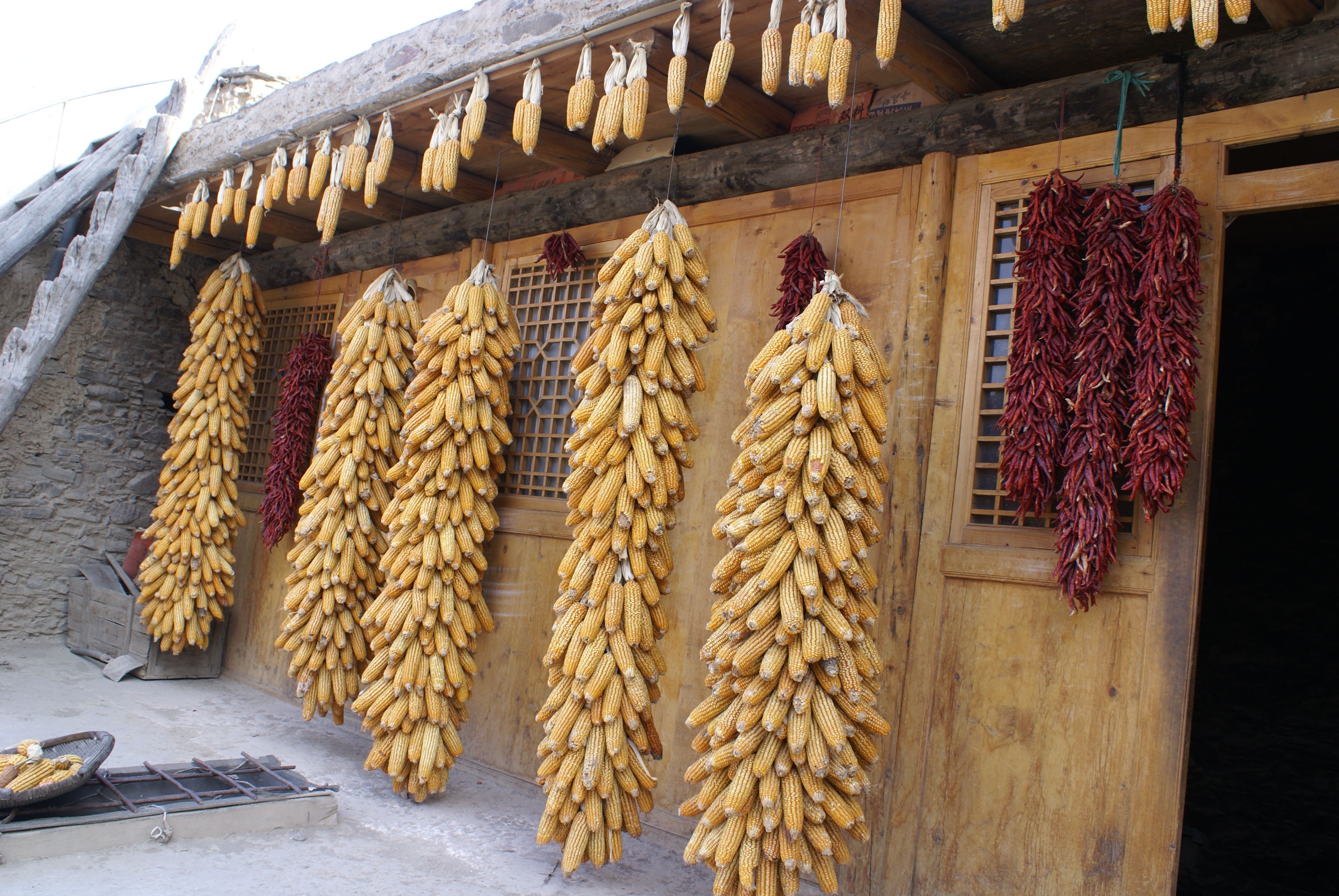 圖片說明:羌族人在自家小院里儲存的食物