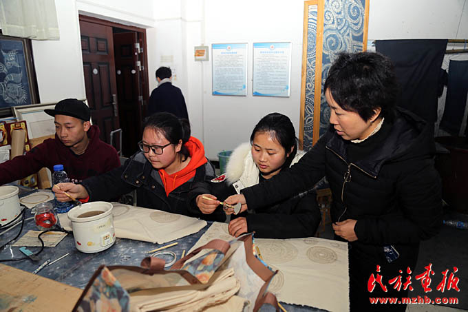 吳安麗老師在凱里學院藝術學院蠟染實訓室指導學生