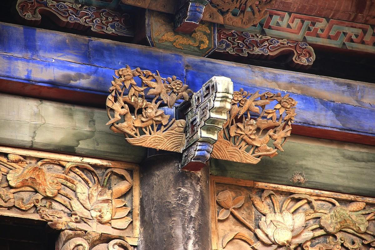 王家大院的磚雕、木雕、石雕藝術(shù)品,隨處可見,且件件精妙、引人入勝。它是王家大院總體建筑藝術(shù)的重要組成部分。其內(nèi)容、其布局、其技法,集中體現(xiàn)了清代纖細(xì)繁密的典型藝術(shù)風(fēng)格。王家大院之所以被稱為“中國民居藝術(shù)館”和“華夏民居第一宅”,一個重要的原因就是因為這里蘊(yùn)藏了大量卓爾不群、璀璨奪目的“三雕”藝術(shù)精品。