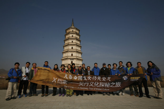 巴林右旗的慶州白塔是契丹遼文化的代表景點之一,圖為“契丹文化探秘之旅”小組在慶州白塔(網(wǎng)絡(luò)圖片)